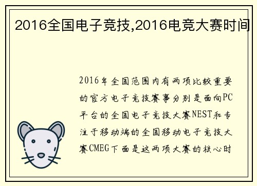 2016全国电子竞技,2016电竞大赛时间
